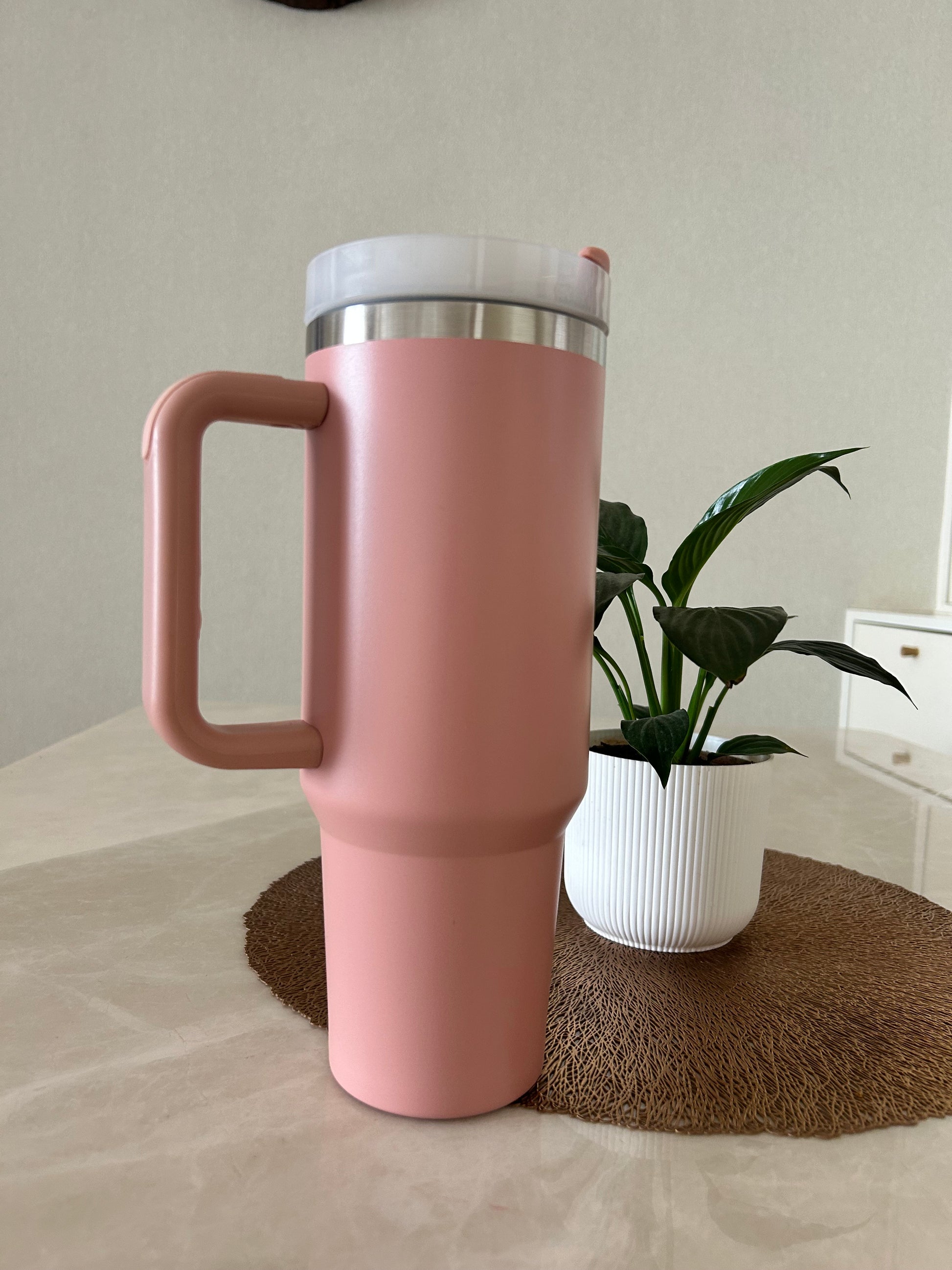 This 1200 ml stainless steel travel mug combines a tall, cup‑holder‑friendly base with a full side handle and sliding lid, making it perfect for long workdays, road trips and gym or home hydration in three elegant colours.