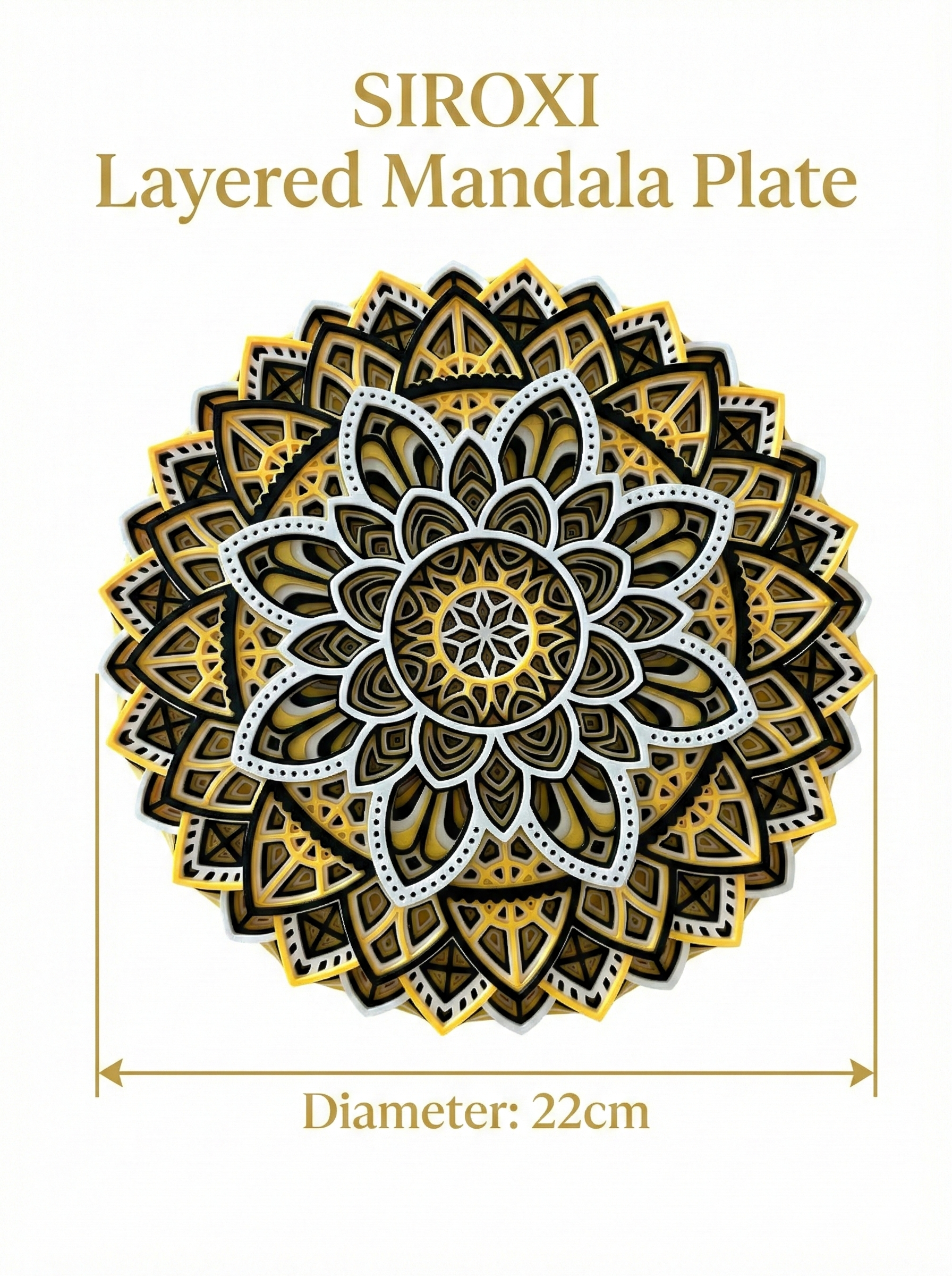 Premium 3D Printed Gold Mandala Wall Decor | Layered Mandala Plate 22cm Diameter – Modern Home Accent