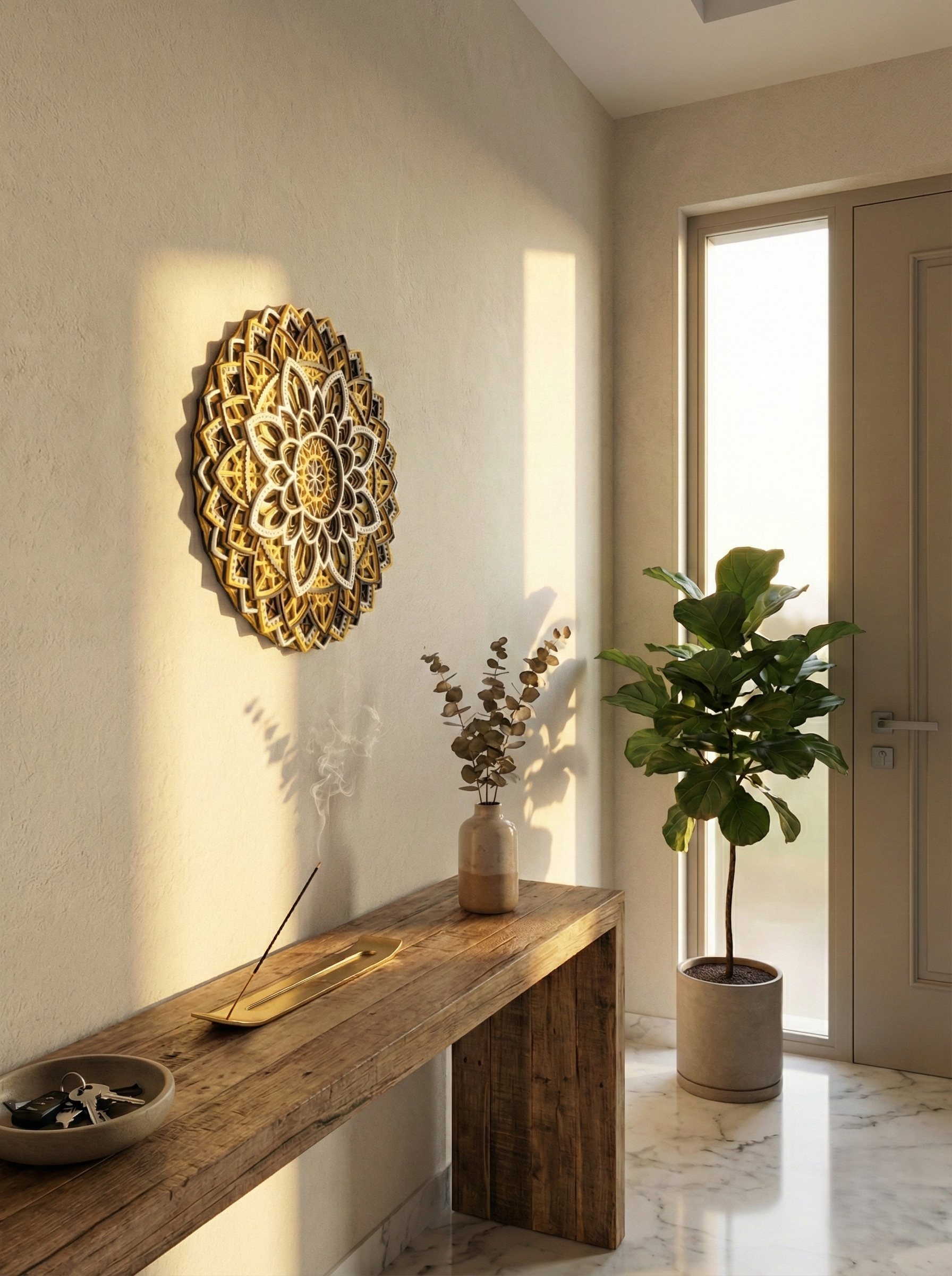 Keywords: 3D printed mandala art 22cm, gold yellow layered mandala wall decor, modern Indian home plate